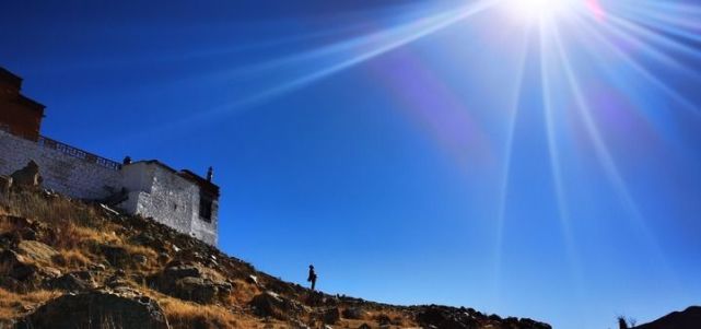 羊卓雍错简称羊湖,大部分位于西藏山南市浪卡子县境内,湖面海拔4400多米。日托寺坐落于羊湖北岸一座半岛上,三面环水。