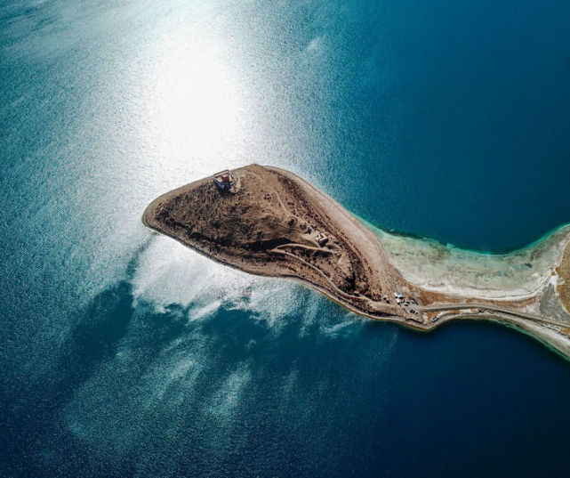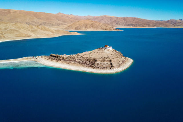 坐落于羊湖北岸一座半岛上的日托寺(手机照片,12月11日摄)。新华社记者 沈虹冰 摄