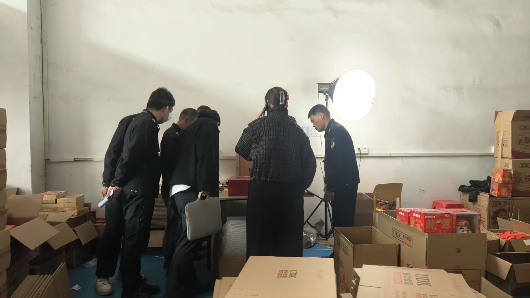 1月26日,佛山市南海区狮山镇市场监督部门执法人员来到辖区优之良品相关仓储场所开展实地执法检查,现场查获印有“UDK 優の良品”及“財”字标识的食品礼盒,该类商品均由优之良品(广东)食品科技有限公司生产, 包装与纽麦兰公司注册商标高度近似,为侵权事实认定提供了核心物证。